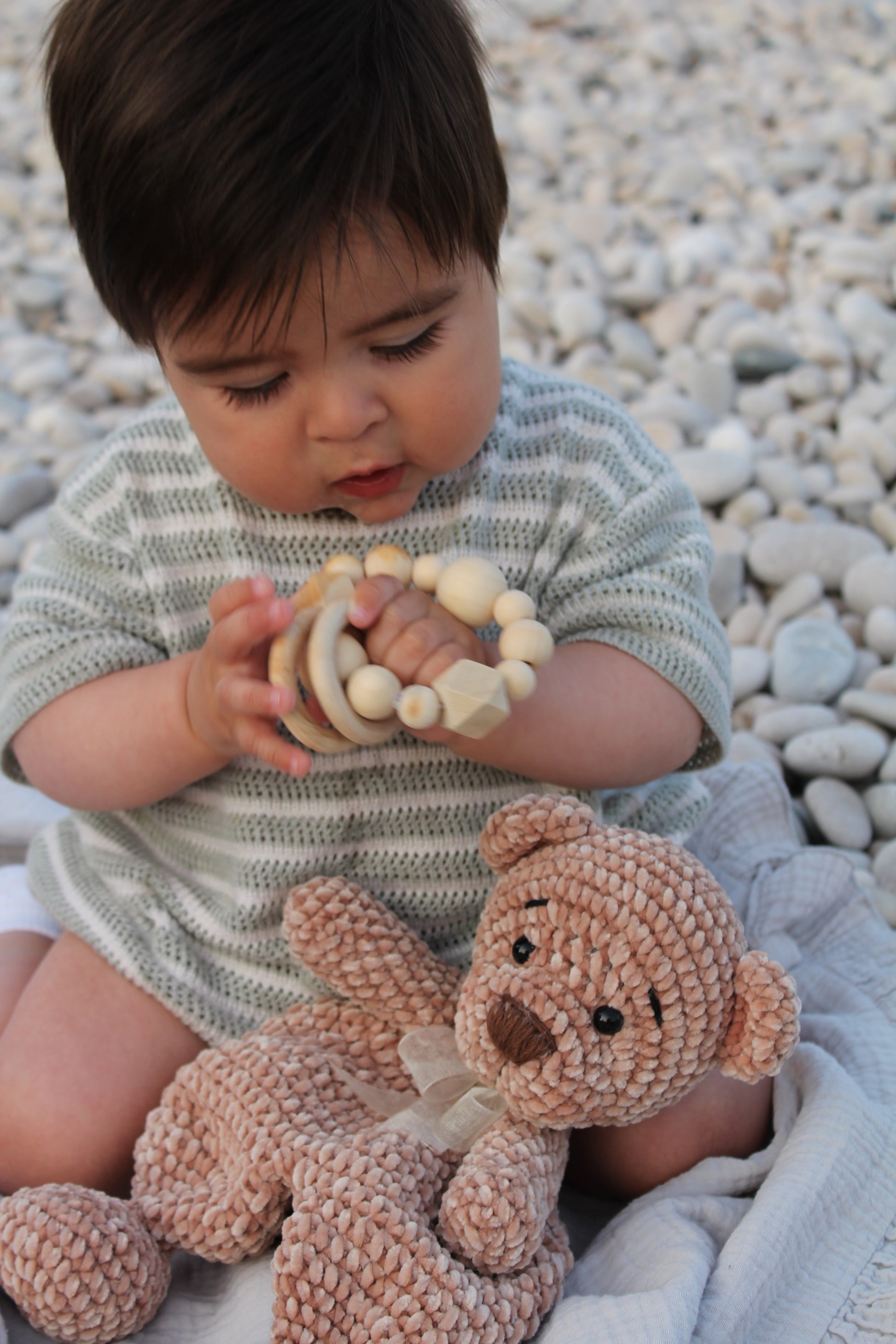 Cada pieza está hecha a mano con materiales naturales y suaves, ideal para regalar en baby showers, nacimientos o como detalle especial.