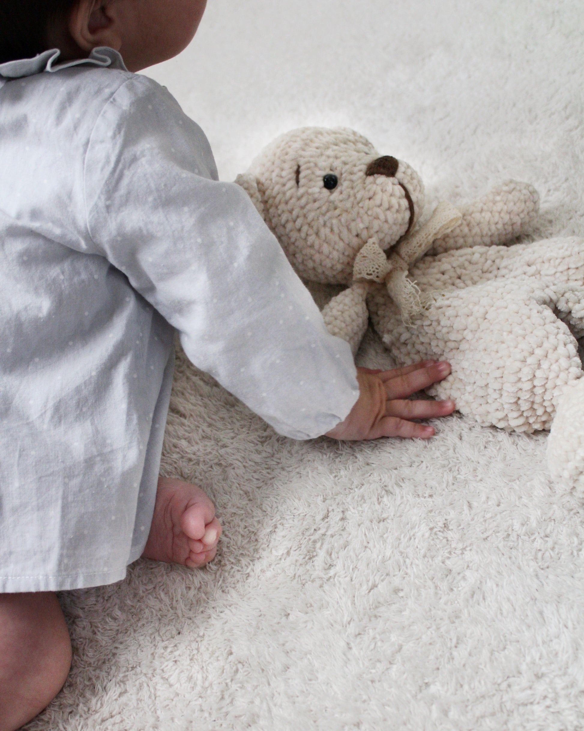 Cada pieza está hecha a mano con materiales naturales y suaves, ideal para regalar en baby showers, nacimientos o como detalle especial.